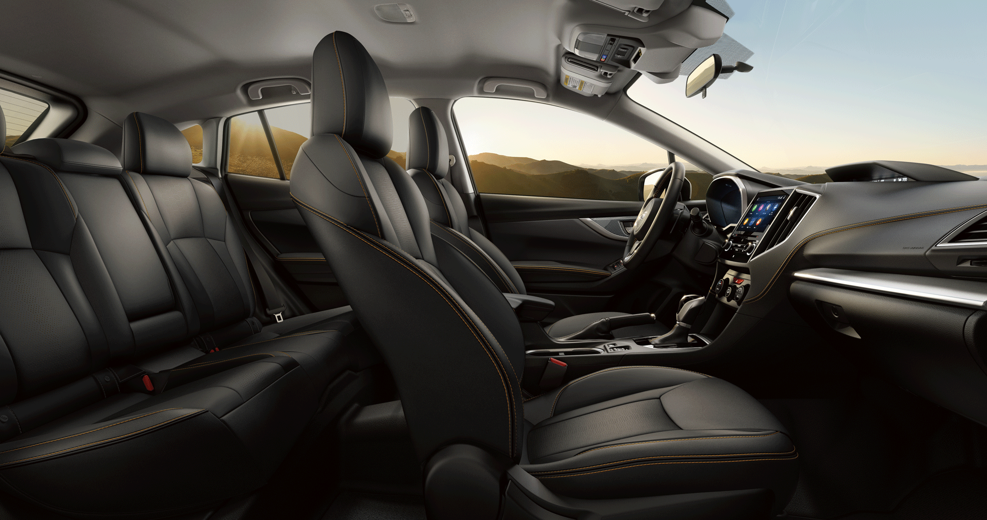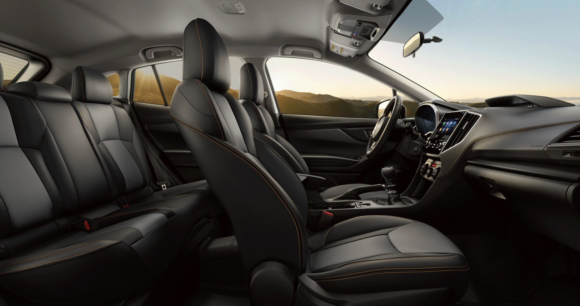 Inside the Crosstrek Sport, you’ll find a comfortable interior that combines modern style and durable high-tech materials. The cabin features standard adventure-ready StarTex water-repellent upholstery with yellow contrast stitching and yellow accent trim, along with floor mats made from recycled materials.