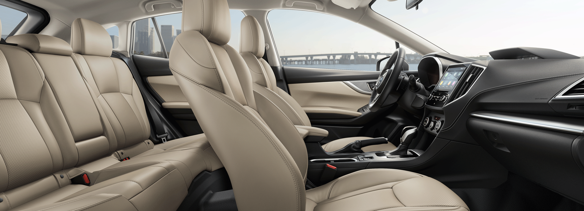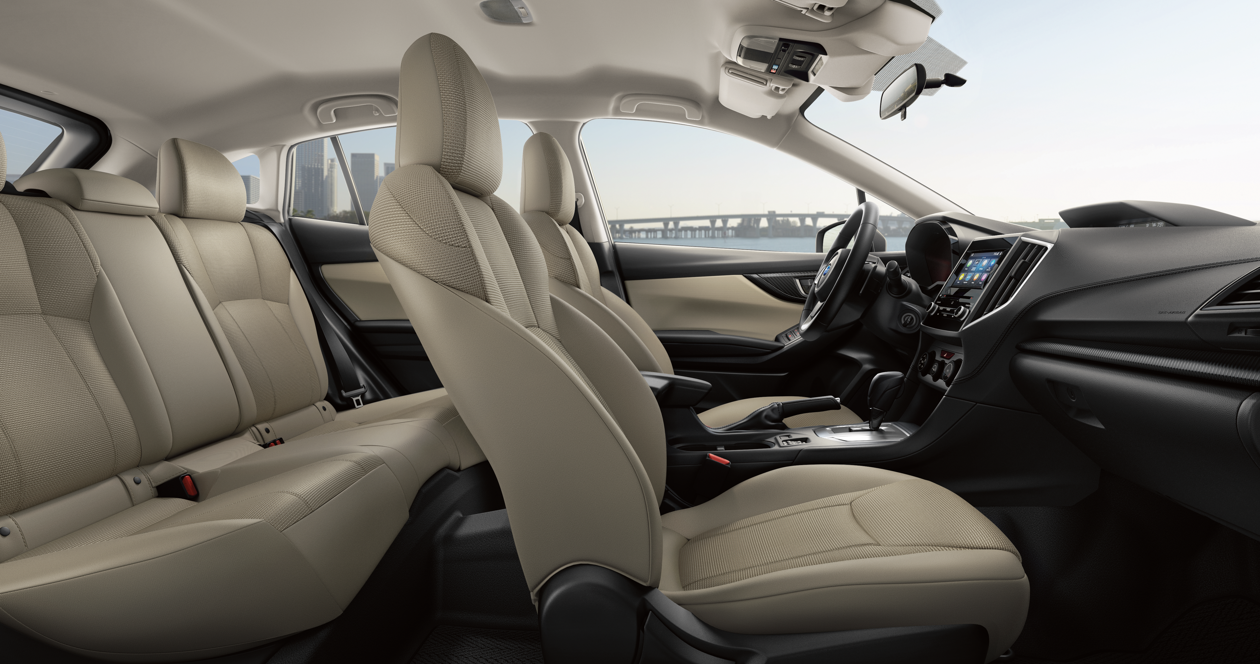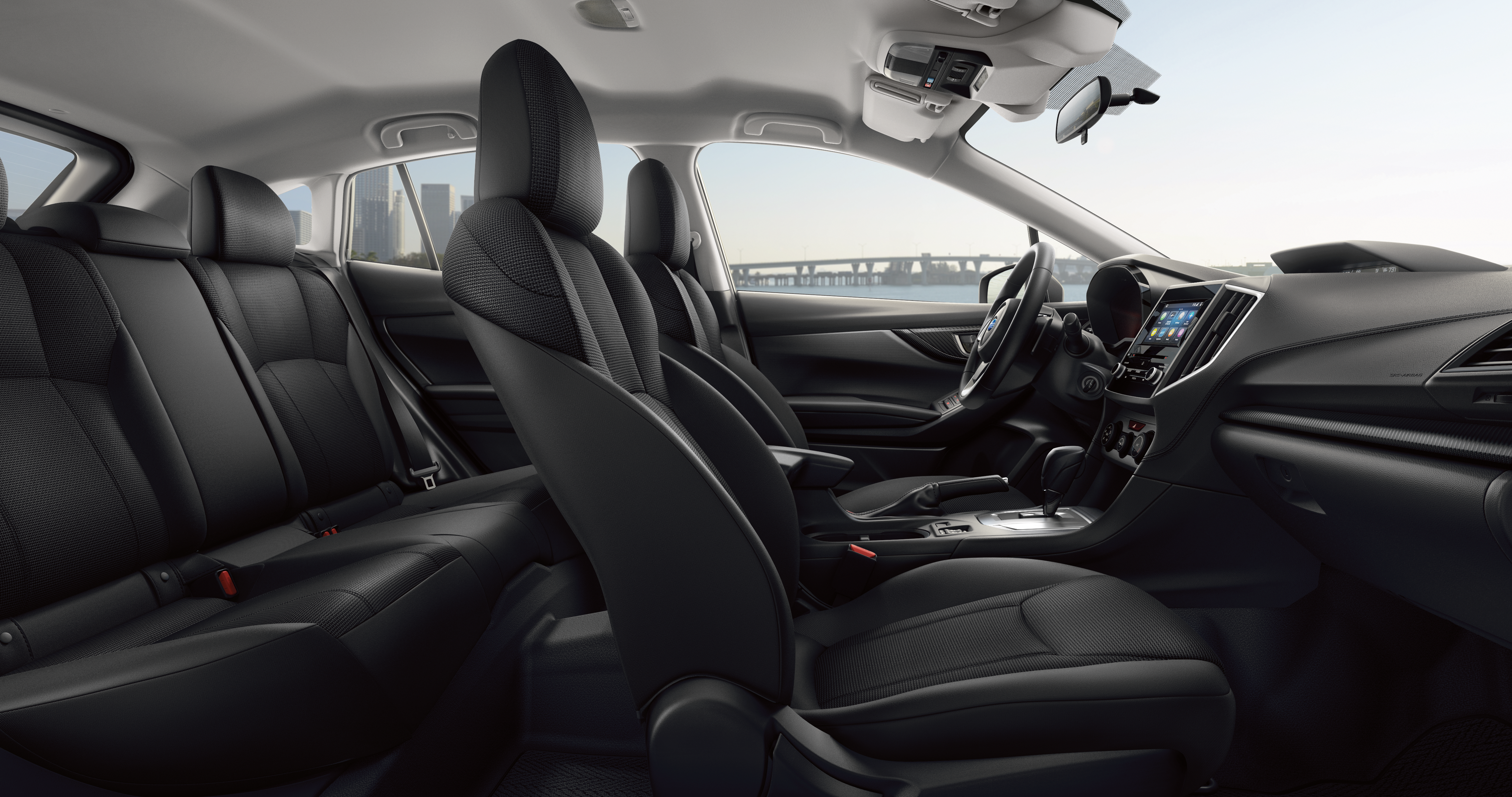 The Impreza sedan and 5-door hatchback feature a refined, spacious interior with high-quality soft-touch materials, contrast-stitched trim, and more passenger volume than the Honda Civic, Toyota Corolla, or Mazda3 at up to 100.9 cubic feet[19]. The cabin is engineered to reduce vibration and road noise and the SUBARU STARLINK Multimedia system offers standard Apple CarPlay® and Android Auto™ integration[20] so all your adventures can be comfortable and entertaining.